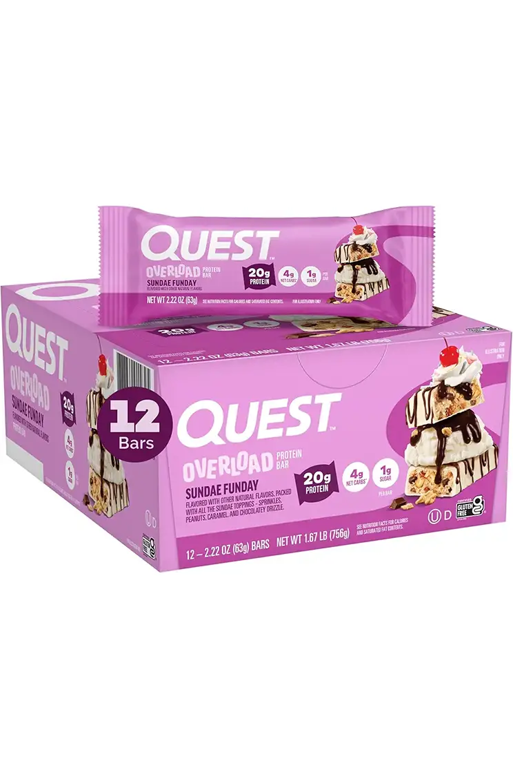 New Quest™ Overload Protein Bars are covered, delightfully drizzled, and packed with more of the chunks, chips & pieces you love – and less of the sugar you don’t.